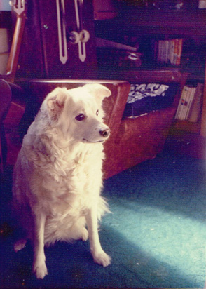 こちらの写真の場合は元写真の色彩が淡いため、空と海と砂浜とワンチャンの色彩にコントラス トを与え全体を引き締めました。ワンチャンの後ろ脚の毛の欠けている部分に毛を移植しました。